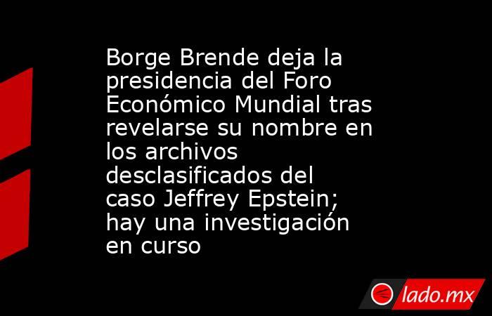 CIUDAD DE MÉXICO.- Borge Brende anunció su renuncia como presidente y director ejecutivo del Foro Económico Mundial (WEF) luego de que su nombre apareciera en archivos desclasificados relacionados con el caso de Jeffrey Epstein. La organización había iniciado una investigación interna un mes antes, tras la difusión de millones de páginas publicadas por el Departamento de Justicia de Estados Unidos.