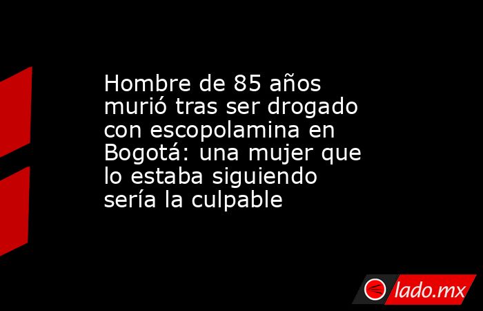 Un hombre de 85 años falleció en Bogotá luego de que, presuntamente, una mujer le suministrara escopolamina durante un robo en una zona residencial de la ciudad.