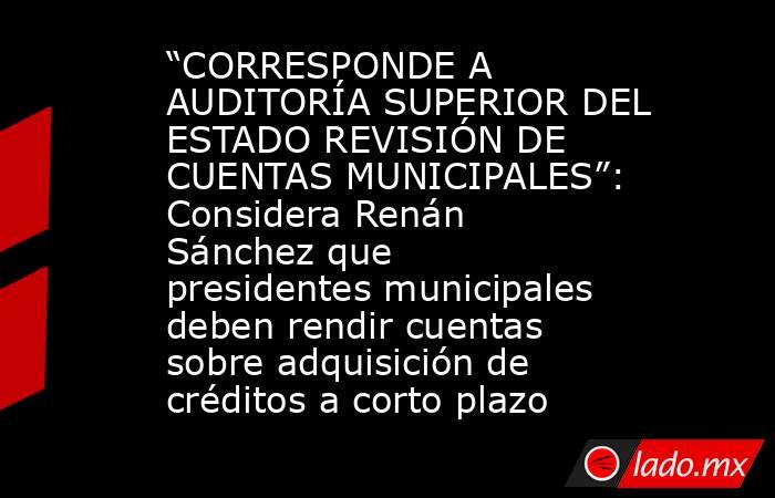– Aunque declinó pronunciarse sobre el déficit financiero que presentan los ayuntamientos y que ha obligado a presidentes municipales a recurrir a la contratación de créditos a corto plazo para enfrentar sus necesidades financieras, el presidente de la Comisión de Hacienda, Presupuesto y Cuenta en el Congreso, Renán Sánchez Tajonar, afirmó […]The post “CORRESPONDE A AUDITORÍA SUPERIOR DEL ESTADO REVISIÓN DE CUENTAS MUNICIPALES”: Considera Renán Sánchez que presidentes municipales deben rendir cuentas sobre adquisición de créditos a corto plazo appeared first on Noticaribe.