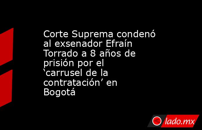 La Sala Especial de Primera Instancia de la Corte Suprema de Justicia condenó al excongresista Efraín Torrado García por el delito de interés indebido en la celebración de contratos en concurso homogéneo, dentro del proceso relacionado con el denominado “carrusel de la contratación” en Bogotá.