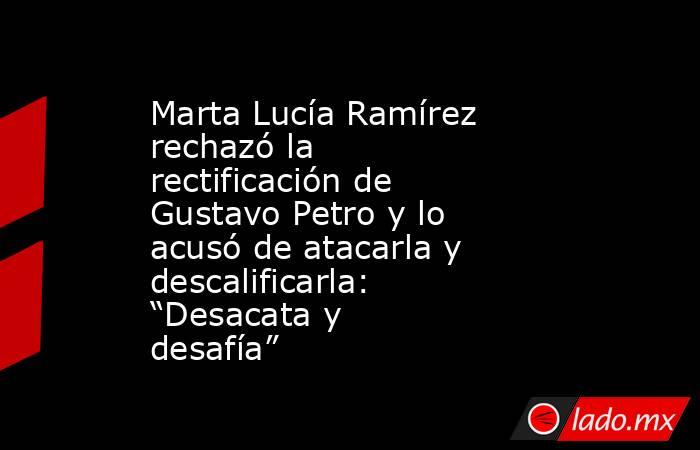 La exvicepresidenta Marta Lucía Ramírez se pronunció sobre la rectificación que hizo el presidente Gustavo Petro sobre señalamientos en su contra. Por orden de un juez de la República, el primer mandatario tuvo que retractarse de haberla acusado de tener socios ligados al narcotráfico y al paramilitarismo.