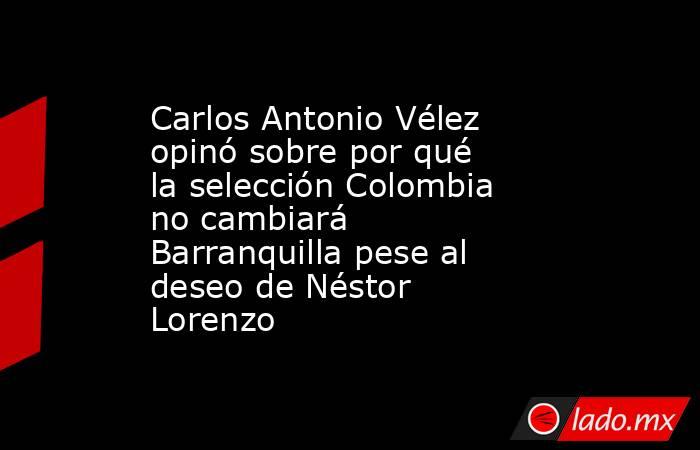 El periodista Carlos Antonio Vélez, en su espacio Palabras Mayores del programa Planeta Fútbol de Deportes RCN, reveló que el técnico de la selección, Néstor Lorenzo, ha manifestado su interés de irse de la ciudad barranquillera, pero hasta ahora no ha logrado cambiar la sede principal.