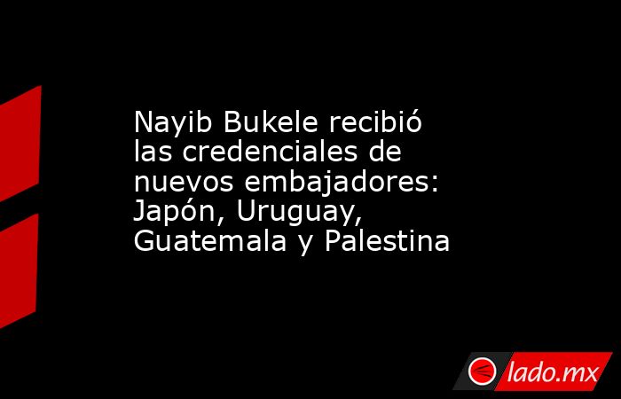 El presidente de El Salvador, Nayib Bukele, presidió una ceremonia donde recibió las cartas credenciales de los nuevos embajadores de Japón, Guatemala, Palestina y Uruguay. Este acto protocolar, oficializó la acreditación de: