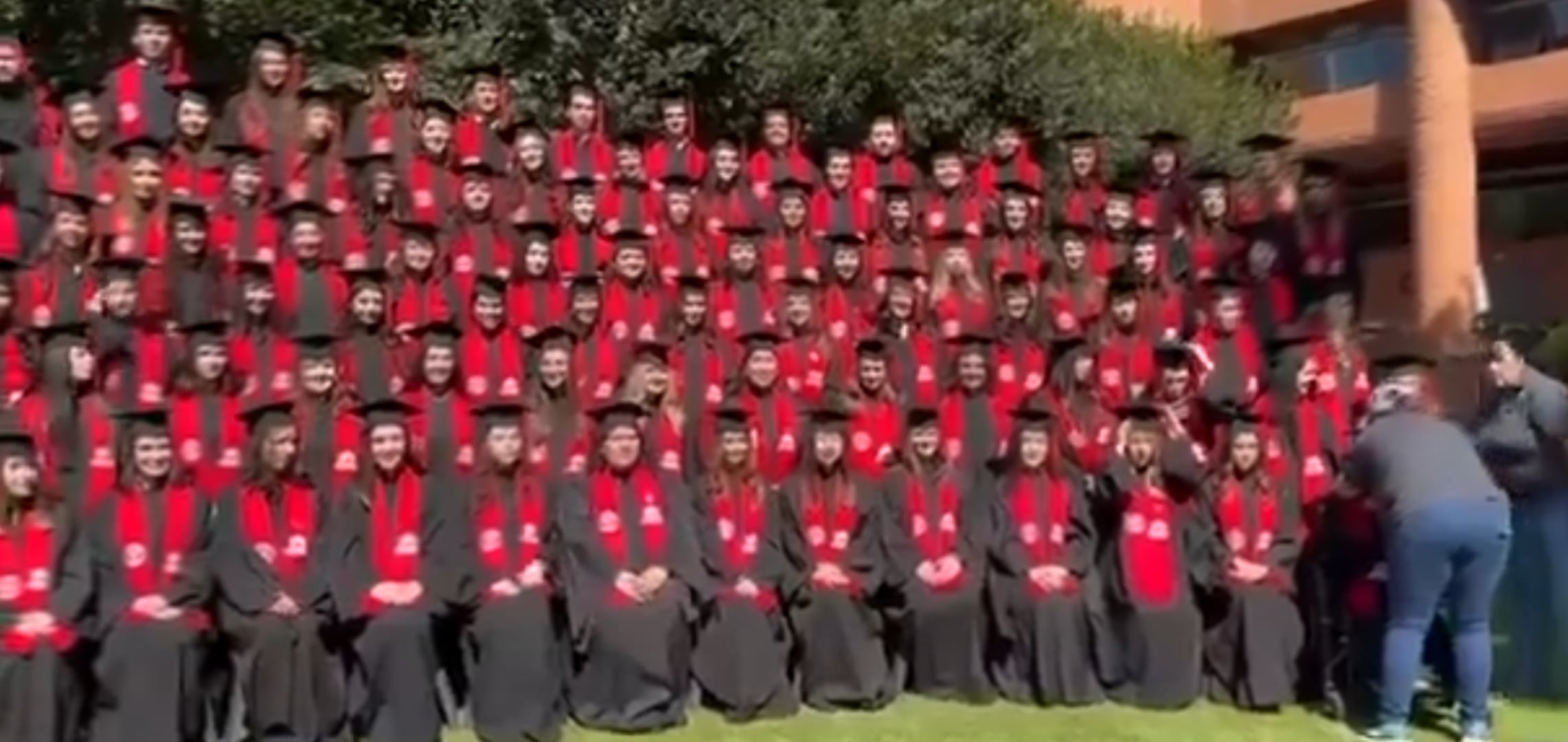 Un grupo de alumnos de la Universidad Iberoamericana cayó de una estructura de gradas cuando posaban para una fotografía de graduación en la Ciudad de México (CDMX). El incidente ocurrió en la explanada del plantel Santa Fe y fue captado en video por asistentes al evento.