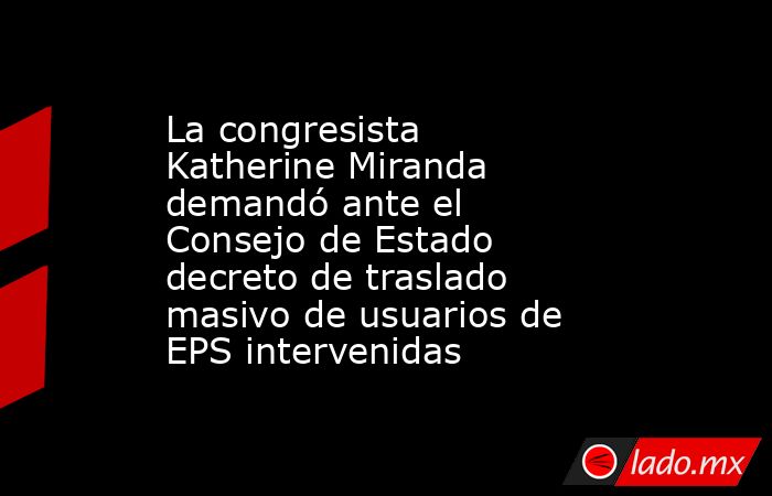 La representante a la Cámara Katherine Miranda presentó una demanda ante el Consejo de Estado contra el decreto 0182 de 2026, que contempla el traslado masivo de usuarios de EPS intervenidas a otras entidades sin su consentimiento expreso.