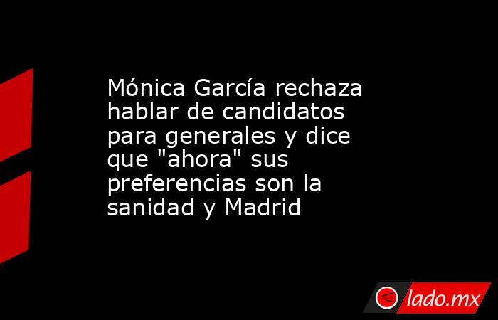 La ministra de Sanidad y líder de Más Madrid, Mónica García, ha insistido este sábado en que la nueva coalición de izquierdas lanzada por su formación, Sumar, Izquierda Unida y los Comunes aún no está en la fase de hablar de quien sucederá a la vicepresidenta Yolanda Díaz como candidata en las próximas elecciones generales y, preguntada directamente por si podría ser ella, ha señalado que "ahora" sus "preferencias" y sus "prioridades" son "la sanidad y Madrid".