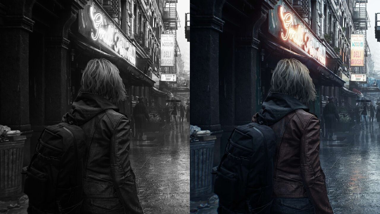 Resident Evil Requiem con un aspecto diferenteMediante un post publicado en X, la compañía nos enseña la misma imagen usando cada uno de estos filtros: uno monocromo que le da un aspecto al título muy parecido a lo que cabría esperar de una película de cine negro y otro que usa una paleta de colores algo más apagada y ominosa para transmitirnos la sensación de estar en un apocalipsis.