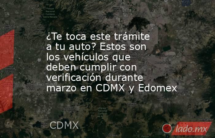 En marzo de 2026, la verificación vehicular corresponde a vehículos que cuentan con un color de engomado y terminación de placas específicos, según el calendario oficial de la Secretaría del Medio Ambiente de la Ciudad de México y la Secretaría del Medio Ambiente y Desarrollo Sostenible del Estado de México.