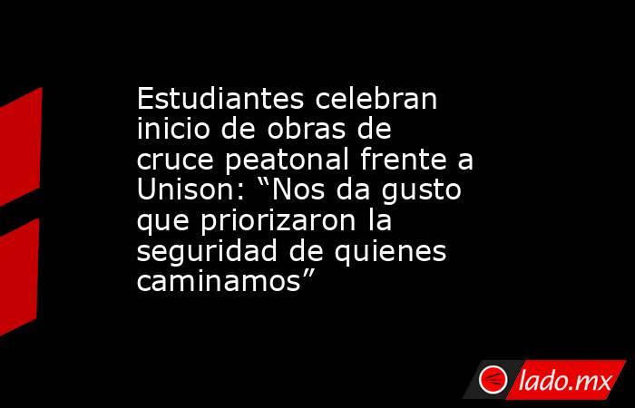 Estudiantes consideran positivos los cambios que se realizan en el cruce frente a la Universidad de Sonora, al señalar que representan una muestra de apoyo a la movilidad de peatones en Hermosillo, afirmó Melissa Samaniego Encinas, impulsora de la iniciativa y ex presidenta del Consejo Estudiantil de Sociedades de Alumnos (CESA) de la Unison.