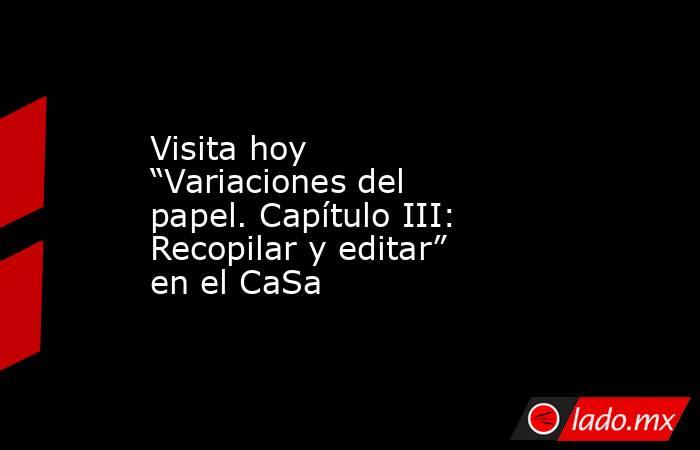 Visita hoy  “Variaciones del papel. Capítulo III: Recopilar y editar” en el CaSa . Noticias en tiempo real 03:53