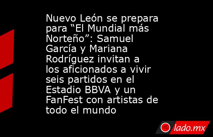 El gobernador Samuel García y Mariana Rodríguez Cantú difundieron un video en redes sociales para invitar a conocer lo que llaman “El Mundial más Norteño”, una propuesta que incluye partidos oficiales, un FanFest de larga duración y conciertos con talento internacional.