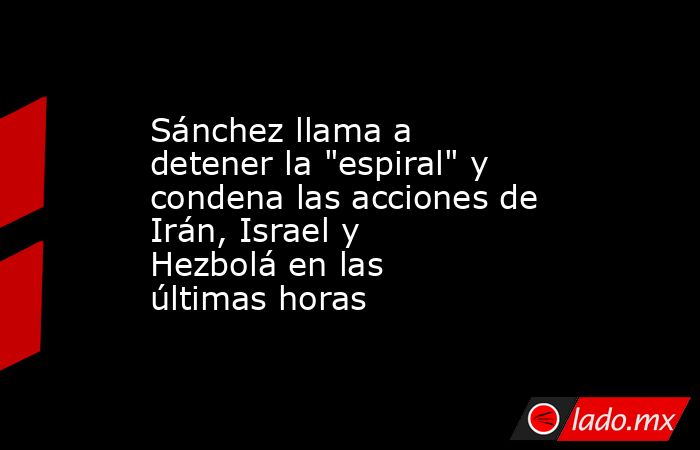 El presidente del Gobierno, Pedro Sánchez, ha hecho un llamamiento a "detener de inmediato la espiral" que se está produciendo en Oriente Próximo a raíz del ataque lanzado por Estados Unidos e Israel contra Irán, condenando las acciones llevadas a cabo en las últimas horas por el régimen iraní así como por el partido-milicia libanés Hezbolá y por el Ejército israelí en Líbano.