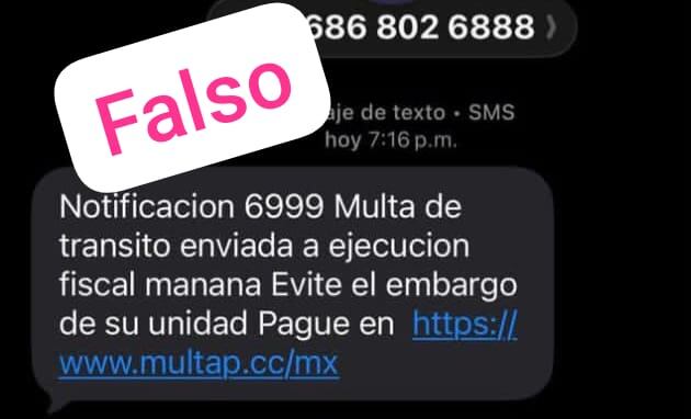 La Policía Preventiva y Tránsito Municipal advirtió a la ciudadanía sobre la circulación de mensajes de texto falsos que informan supuestas multas de tránsito, adeudos por radar o amenazas de embargo, acompañados de enlaces para realizar pagos.