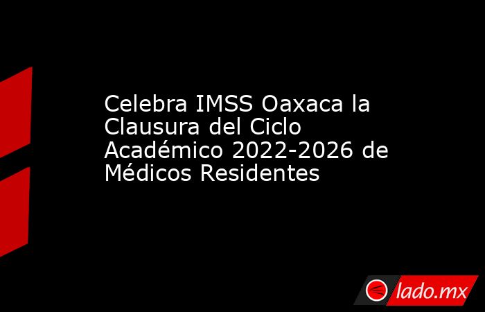 El Instituto Mexicano del Seguro Social (IMSS) en Oaxaca, llevó a cabo la Ceremonia de Clausura del Ciclo Académico 2022-2026 de Médicos Residentes, en la que 59 médicas y médicos concluyeron su formación como especialistas en Anestesiología, Medicina Interna, Cirugía General, Medicina de Urgencias, Pediatría, Ginecología y Obstetricia, así como.
