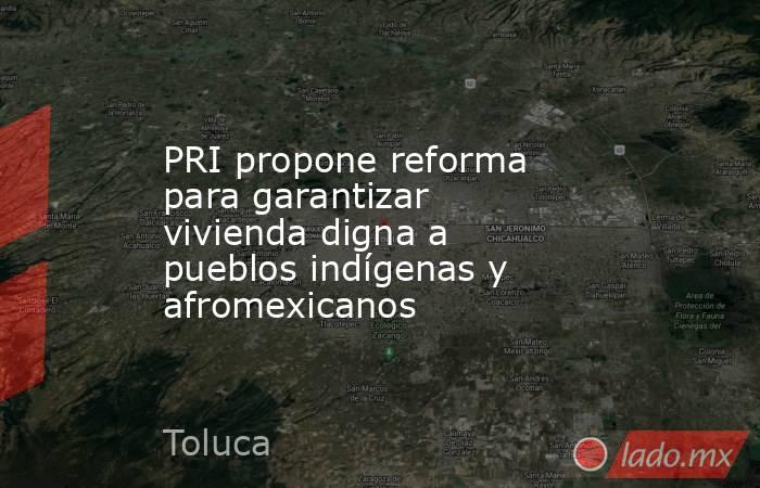El diputado de la bancada del Partido Revolucionario Institucional (PRI) en el Congreso del estado de México, Eduardo Zarzosa Salazar, presentó una iniciativa para reformar la Ley de Vivienda estatal, con el fin de garantizar acceso equitativo a la vivienda para pueblos y comunidades indígenas y afromexicanas.