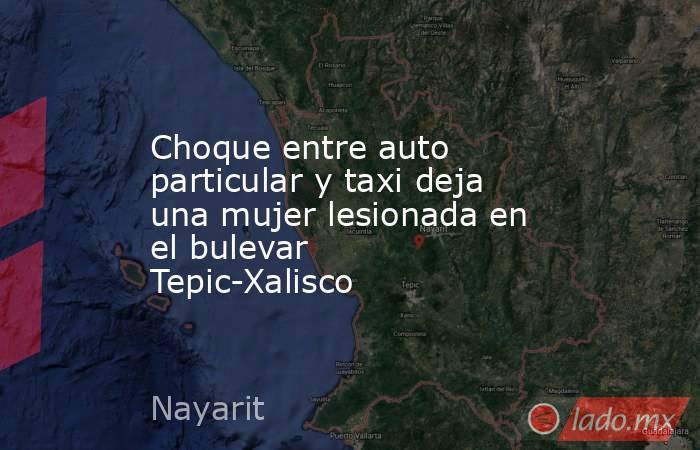 Una mujer de 70 años resultó lesionada tras un choque entre un vehículo particular y un taxi registrado la mañana de este miércoles en el bulevar Tepic-Xalisco, a la altura de la calle Brasil, en la colonia Los Fresnos Poniente, en el municipio de Tepic.