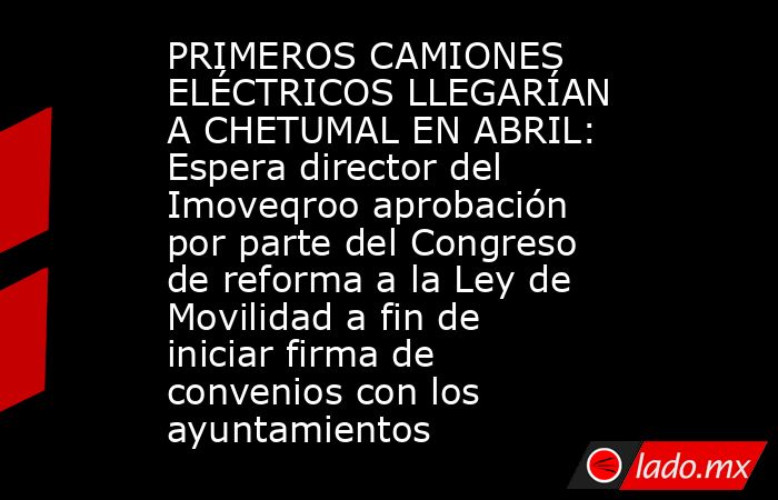 - Al aclarar que hasta el momento no hay fecha para la llegada de los autobuses eléctricos para el servicio de pasajeros en la capital del Estado, el director del Instituto de Movilidad, Rafael Hernández Kotasek, confirmó que se propuso al Congreso modificar la ley correspondiente para que el periodo de […]The post PRIMEROS CAMIONES ELÉCTRICOS LLEGARÍAN A CHETUMAL EN ABRIL: Espera director del Imoveqroo aprobación por parte del Congreso de reforma a la Ley de Movilidad a fin de iniciar firma de convenios con los ayuntamientos appeared first on Noticaribe.