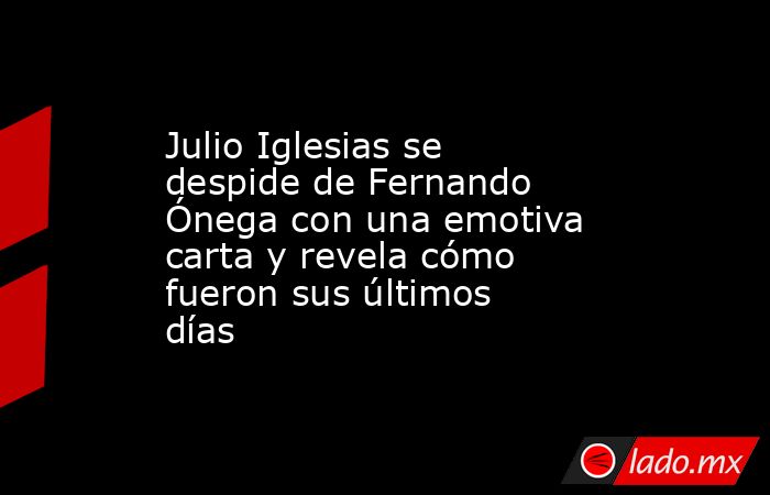 Una despedida conmovedora que Julio ha terminado de la siguiente manera, confiando en que en algún momento volverá a verle: "Desde la tierra al cielo la distancia no es tan grande. Espero verte y abrazarte una vez más". "Todo mi cariño para Ángela, para tus hijas, y sobre todo para mi ahijado" ha concluido, expresando que en estos durísimos momentos tiene muy presente a la familia del periodista pero especialmente a su hijo menor, Fernando Ónega Jr. (23), cuyo padrino es el cantante.