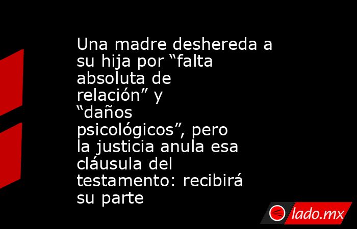 Lo acaba de descubrir una mujer de Vigo que apeló para revertir una sentencia previa que anulaba la cláusula del testamento de su madre en la que esta desheredaba a una de sus hijas, en favor de esta otra. En su testamento, la madre justificó su decisión por la “falta absoluta de relación” y “daños psicológicos” atribuidos a una de sus hijas. Pero más tarde los jueces anularon esa decisión en primera instancia, aunque la hija favorecida por el testamento recurrió el fallo.