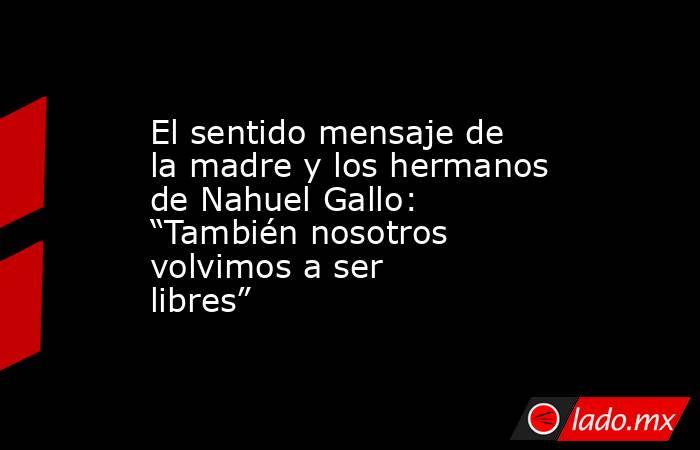“Cuando Nahuel recuperó la libertad, no fue solamente él quien volvió a ser libre. Después de 448 días, con él también sentimos que nos liberábamos nosotros, porque durante todo este tiempo vivimos con el corazón en pausa, esperando el día en que pudiéramos volver a estar completos”, señala en el texto que es de la autoría de su madre, Griselda Heredia, y de sus hijos Armando Gallo, Daiana Gallo y Kevin Gallo, hermanos de Nahuel.