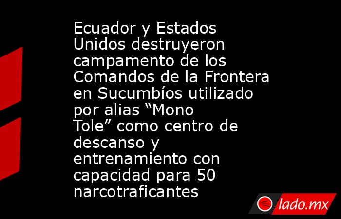 Ecuador y Estados Unidos ejecutaron una operación militar conjunta que permitió destruir un campamento atribuido al grupo criminal Comandos de la Frontera, vinculado al cabecilla conocido como alias “Mono Tole”, en la provincia de Sucumbíos, cerca de la frontera norte con Colombia.