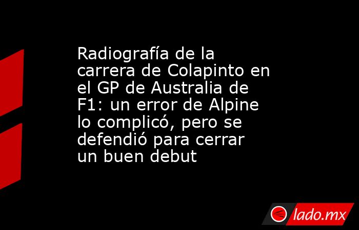 Franco Colapinto terminó 14º en el Gran Premio de Australia de Fórmula 1 que marcó el inicio de la temporada. El piloto argentino de Alpine cumplió con una buena labor en el circuito callejero del Albert Park en Melbourne, que hace 30 años se incorporó al calendario.