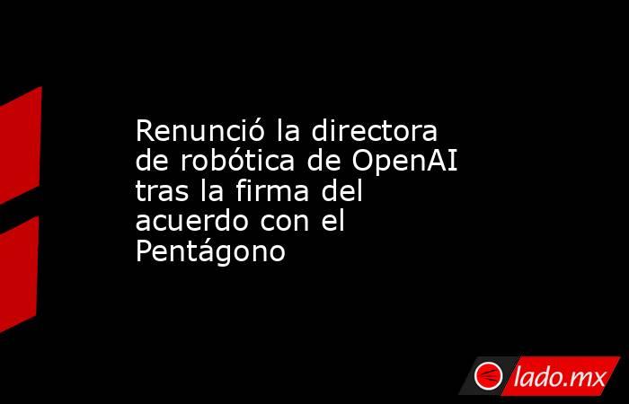 La directora de robótica y hardware de consumo de OpenAI, Caitlin Kalinowski, renunció a su puesto el 7 de marzo de 2026, tras expresarse en desacuerdo con los términos del reciente acuerdo entre la compañía y el Pentágono, según informaron Fortune y Reuters.