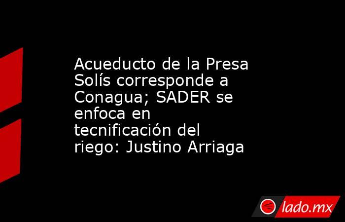 Tras los cuestionamientos que han surgido sobre la construcción del acueducto de la Presa Solís, el delegado federal de la Secretaría de Agricultura y Desarrollo Rural en Guanajuato, Justino Arriaga Rojas, aclaró que dicho proyecto no corresponde a su dependencia, sino a la Comisión Nacional del Agua.