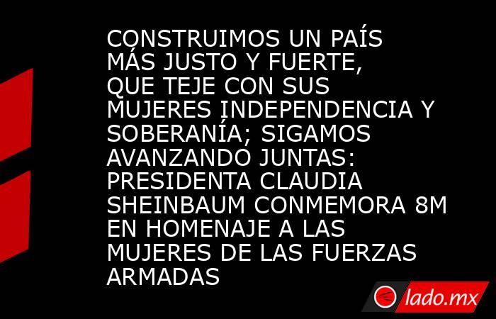 Enfatizó que el reconocimiento es también un compromiso para seguir construyendo instituciones más justas, más incluyentes y libres de discriminación, acoso y violencia* Destacó que México tiene una historia profunda de mujeres extraordinarias tejedoras de la patria: en la Independencia, Leona Vicario, Josefa Ortiz Téllez-Girón, Gertrudis Bocanegra, Manuela Molina, Altagracia Mercado, Mariana Rodríguez del Toro; en la Reforma, Margarita Maza, Ignacia Riesch, y en la Revolución Mexicana, Carmen y Natalia Serdán, Dolores Jiménez y Muro, Hermila Galindo, así como Adela Velarde*Ciudad de México, a 8 de marzo de 2026.-* La Presidenta Claudia Sheinbaum Pardo encabezó la conmemoración del Día Internacional de la Mujer en homenaje a las mujeres de las Fuerzas Armadas, resaltando que el pueblo de México las reconoce y respeta, ya que su servicio fortalece al país y juntas construyen una nación justa y fuerte que teje con sus mujeres independencia y soberanía.*“Sepan que el pueblo de México las ve, las reconoce y las respeta. Sepan que su servicio fortalece a nuestro país y sepan que cada paso que dan abre camino para muchas mujeres mexicanas. Y si alguna vez dudan de la grandeza de lo que hacen, recuerden esto: detrás de cada paso suyo, late el corazón agradecido de todo un pueblo y de toda una nación. Sigamos avanzando juntas. Sigamos construyendo un México donde ninguna mujer tenga límites; un México donde la igualdad sea una realidad cotidiana; un México donde la historia, el talento y la vocación de cada mujer encuentren siempre un espacio para florecer.* *“Porque cuando reconocemos el valor de las mujeres en nuestra historia, en nuestro presente y en nuestro futuro, estamos construyendo un país más justo. Y un país más justo es, sin duda, un país más fuerte. Un país que todos los días teje con sus mujeres, libertad, democracia, justicia. Un país que todos los días tejemos juntas y juntos, una nación que teje con sus mujeres independencia y soberanía. ¡Que vivan las mujeres de México! ¡Que vivan las mujeres de las Fuerzas Armadas! ¡Que viva México libre, independiente, igualitario y soberano! ¡Que viva México !¡Que viva México! ¡Que viva México!”*, resaltó desde el Campo Deportivo Militar Marte en la Ciudad de México. La primera mujer Presidenta en 200 años de la República puntualizó que el reconocimiento es también un compromiso para seguir construyendo instituciones más justas, más incluyentes y libres de discriminación, acoso y violencia.La Comandanta Suprema de las Fuerzas Armadas destacó que México tiene una historia profunda de mujeres extraordinarias tejedoras de la patria. Ejemplo de ello, en la Independencia: Leona Vicario, Josefa Ortiz Téllez-Girón, Gertrudis Bocanegra, Manuela Molina, Altagracia Mercado, Mariana Rodríguez del Toro; en la Reforma: Margarita Maza, Ignacia Riesch, apodada como La Barragana, y en la Revolución Mexicana: Carmen y Natalia Serdán, Dolores Jiménez y Muro, Hermila Galindo, así como Adela Velarde y cientos de mujeres más.“Las mujeres de las Fuerzas Armadas. Mujeres del Ejército, de la Fuerza Aérea y de la Marina-Armada de México. Mujeres que portan con orgullo el uniforme. Mujeres que sirven a México con honor. Ustedes representan la continuidad de esa historia, de heroínas. Son parte de generaciones que han demostrado que el amor por la patria no tiene género, que el valor no tiene género y que el compromiso con México nace del corazón”, enfatizó.Recordó que cuando una mujer avanza, avanzan todas y al romper barreras se abren puertas como lo hicieron las mujeres de las Fuerzas Armadas, que hoy son ejemplo de niñas que entienden que pueden pilotear aeronaves, dirigir unidades, participar en operaciones de protección civil, apoyar a la población en desastres y tomar decisiones estratégicas.En el evento, en el que estuvo acompañada por miembros de su gabinete legal y ampliado, representantes del Poder Legislativo y del Poder Judicial, la mandataria entregó condecoraciones y reconocimientos a 30 mujeres del Ejército, Fuerza Aérea y Guardia Nacional; 10 de la Secretaría de Marina; y 20 de la Secretaría de las Mujeres por su labor destacada.La secretaria de las Mujeres, Citlalli Hernández Mora, reconoció el esfuerzo de las mujeres de las Fuerzas Armadas, quienes demuestran que pueden ser capitanas, generalas y comandantas supremas de las Fuerzas Armadas. Destacó la visión de la Presidenta para cumplir con las mexicanas a través de diversas acciones como la creación de la primera Secretaría de las Mujeres, la difusión de la Cartilla de los Derechos de las Mujeres, su traducción en la lengua indígena, la construcción de Centros LIBRE y todo el trabajo que realiza a diario.El secretario de Defensa, general Ricardo Trevilla Trejo, informó que en el Ejército, Fuerza Aérea y Guardia Nacional hay más de 42 mil 660 mujeres, de las cuales más de 7 mil se incorporaron en la presente administración, en la cual también se dio el paso para incorporar a mujeres en todas las unidades operativas ejerciendo el mando y este año se graduarán mil 560 mujeres del Sistema Educativo Militar, el mayor número en la historia.