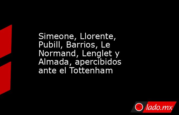 El delantero Giuliano Simeone, los centrocampistas Marcos Llorente, Pablo Barrios y Thiago Almada, y los defensas Marc Pubill, Robin Le Normand y Clément Lenglet, llegan como apercibidos por parte del Atlético de Madrid al partido de ida de los octavos de final de la de la Liga de Campeones 2025-2026 ante el Tottenham inglés de este martes (21.00 horas) en el Estadio Riyadh Air Metropolitano.
