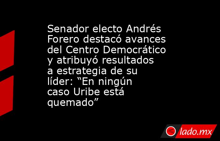 El senador electo Andrés Forero reivindicó la fortaleza interna del Centro Democrático tras las elecciones legislativas del domingo 8 de marzo, al resaltar la “recuperación importante” de la colectividad.