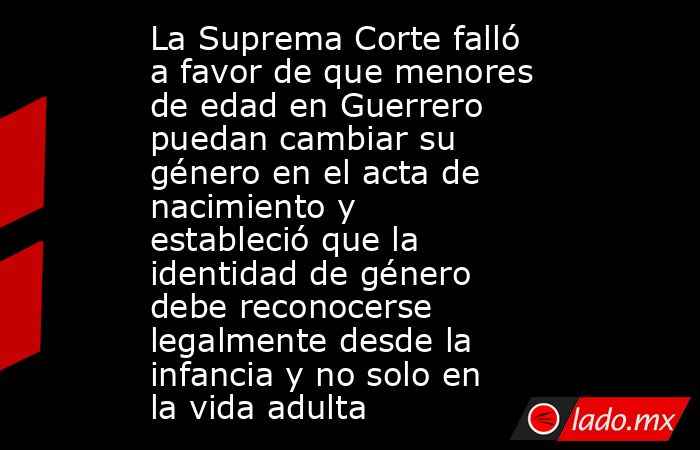 La Suprema Corte de Justicia de la Nación resolvió que las personas menores de edad en Guerrero podrán modificar su sexo y nombre en el acta de nacimiento, conforme a su identidad de género, sin que este derecho dependa de haber cumplido 18 años.