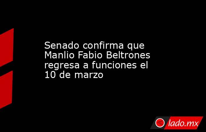 La Cámara de Senadores confirmó que Manlio Fabio Beltrones, actualmente senador sin partido, regresará este martes 10 de marzo de 2026 a sus funciones legislativas.