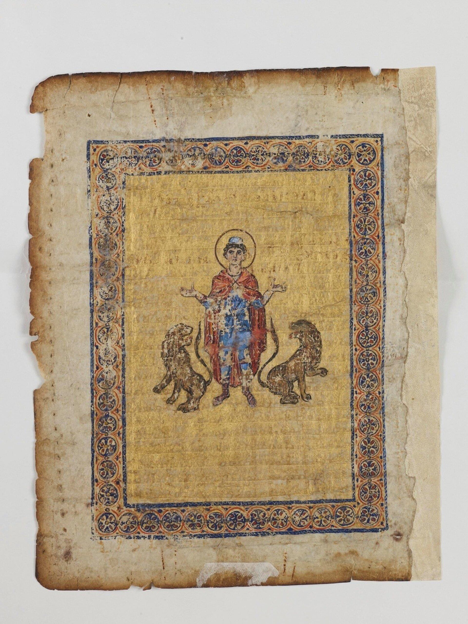 Estas fotografías han permitido confirmar "sin ambigüedad" que la página hallada era la número 123 del Palimpsesto. En una de sus dos caras, un texto de oraciones cubre parcialmente diagramas geométricos y un pasaje del tratado "Sobre la esfera y el cilindro", Libro I, Proposiciones 39 a 41, gran parte del cual sigue siendo en gran parte legible. La otra cara está cubierta por una iluminación añadida en el siglo XX, que representa al profeta Daniel rodeado de dos leones, bajo la cual el texto antiguo sigue siendo inaccesible hasta el día de hoy mediante los métodos convencionales de examen.