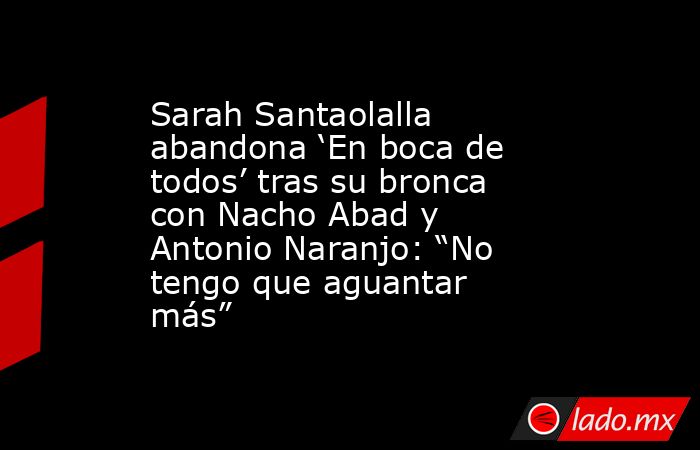 En boca de todos vivió este martes, 10 de marzo, uno de los momentos más tensos que se recuerdan en una tertulia política televisiva. Gritos, acusaciones cruzadas, llanto y el abandono del plató por parte de una de las colaboradoras marcaron un episodio que se produjo en pleno directo durante el espacio de Cuatro conducido por Nacho Abad. El enfrentamiento tuvo como protagonistas a los colaboradores Antonio Naranjo y Sarah Santaolalla. La discusión derivó finalmente en la abrupta salida de la tertuliana del plató y en un posterior comunicado público en el que anunció que no volverá a participar en el programa de Mediaset.