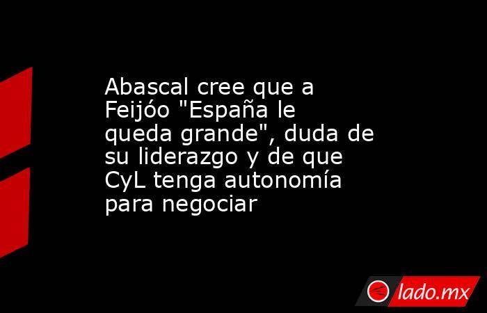 El presidente de Vox, Santiago Abascal, ha afirmado que al presidente del PP, Alberto Núñez Feijóo, "España le queda grande", al tiempo que ha dudado de su liderazgo y le haya reprochado que lo que vale en Valencia "no lo permita en Extremadura o Aragón".
