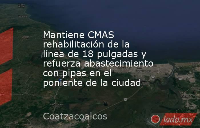 El alcalde, Pedro Miguel Rosaldo García, informó que la Comisión Municipal de Agua Potable y Saneamiento de Coatzacoalcos (CMAS) continúa con la rehabilitación de la línea de 18 pulgadas, con el objetivo de recuperar el nivel que requiere el tanque poniente y restablecer el suministro de agua en las colonias afectadas del sector poniente de la ciudad.