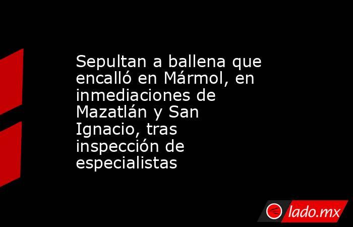 San Ignacio, Sinaloa. _ Autoridades de Protección Civil y Bomberos de San Ignacio informaron que la ballena que encalló en Mármol, en las inmediaciones entre Mazatlán y San Ignacio, fue finalmente sepultada la tarde de este miércoles 11 de marzo luego de que personal especializado realizara una inspección del mamífero marino en la zona de playa donde fue localizada.