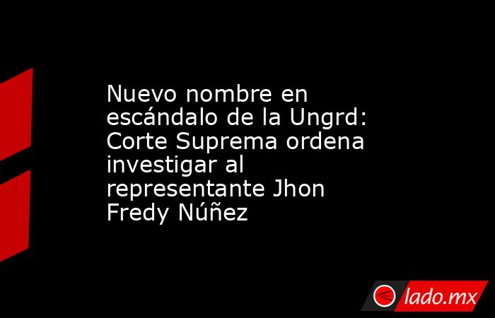 La Corte Suprema de Justicia ordenó investigar al representante de las curules de paz, Jhon Fredy Núñez Ramos, en el marco del caso de corrupción que involucra a la Unidad Nacional de Gestión del Riesgo de Desastres (Ungrd), según conoció El Tiempo. La medida amplía la lista de congresistas bajo investigación por presuntas irregularidades relacionadas con contratos y gestión de proyectos públicos.
