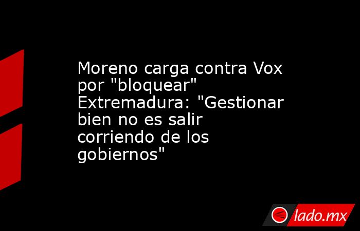 El presidente de la Junta de Andalucía, Juanma Moreno, ha reprochado este jueves a Vox que esté "bloqueando" la investidura de María Guardiola como presidenta de Extremadura tras las elecciones celebradas el pasado mes de diciembre y en las que el PP fue el partido más votado pero no logró la mayoría absoluta. Ha advertido a Vox de que gestionar bien "no es salir corriendo de los gobiernos", en referencia a la decisión de esa formación de romper pactos con el PP en varias comunidades.