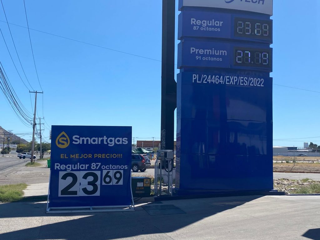 Al poniente, por rumbos del bulevar Solidaridad, Mr. Fill y Smartgas ofrecen la gasolina regular a 23.79 y 23.69 pesos respectivamente.