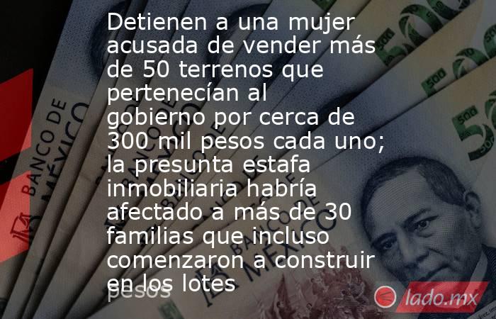 Una mujer fue detenida acusada de cometer una estafa inmobiliaria tras vender más de 50 terrenos que pertenecían al Estado como si fueran de su propiedad, una operación que habría afectado al menos a 30 familias que pagaron por lotes e incluso iniciaron trabajos de construcción.