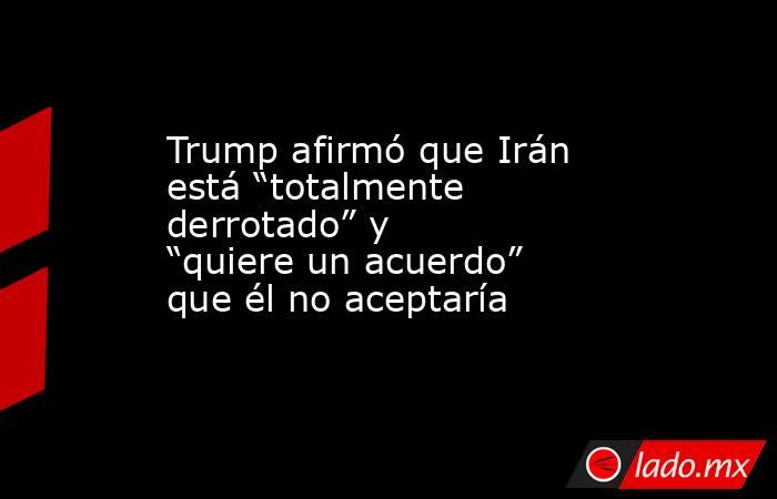 El presidente estadounidense Donald Trump afirmó este sábado que Irán fue “totalmente derrotado” en la campaña militar conjunta de Estados Unidos e Israel contra el régimen ayatollah, y aseguró que Teherán busca un acuerdo que él no aceptará.