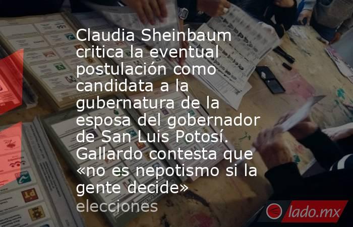 Claudia Sheinbaum critica la eventual postulación como candidata a la gubernatura de la esposa del gobernador de San Luis Potosí. Gallardo contesta que «no es nepotismo si la gente decide»