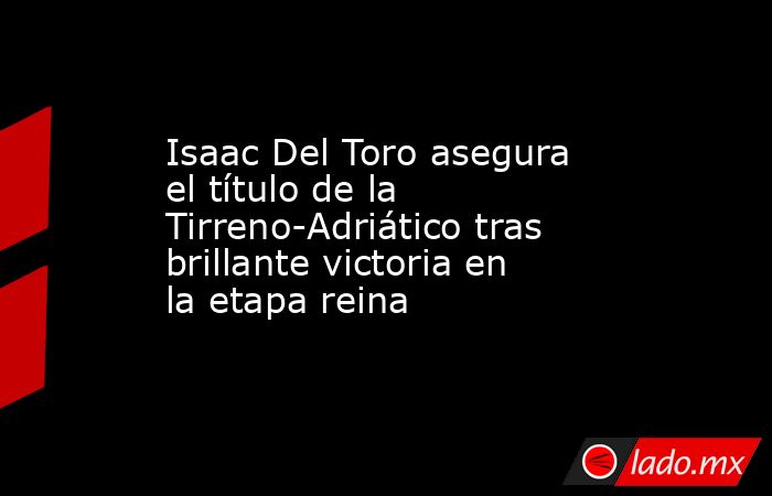 El ciclista mexicano Isaac Del Toro firmó una actuación memorable al asegurar el título de la Tirreno-Adriático, conocida como la “Carrera de los dos mares”, luego de imponerse con autoridad en la exigente etapa reina disputada este sábado.