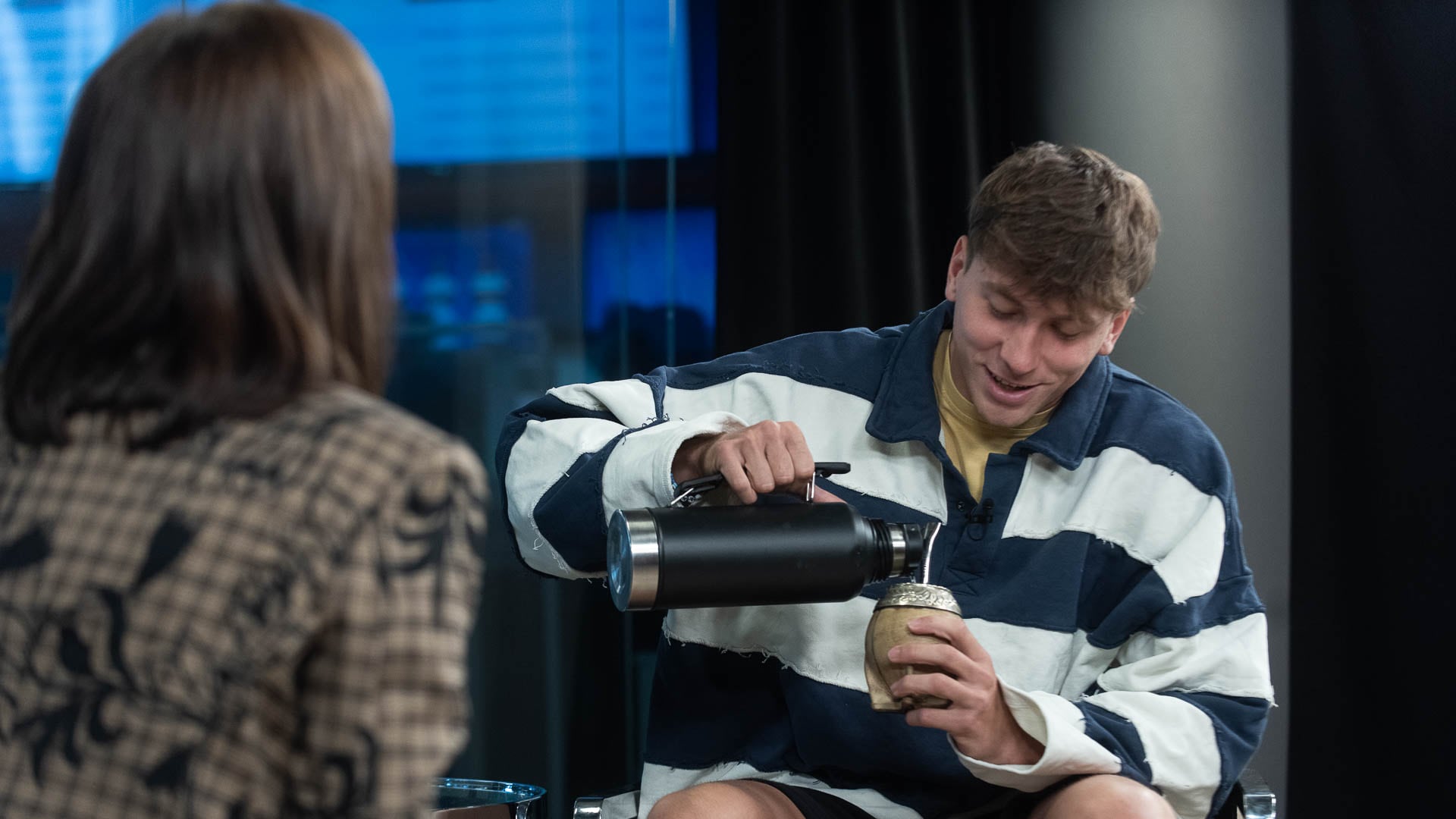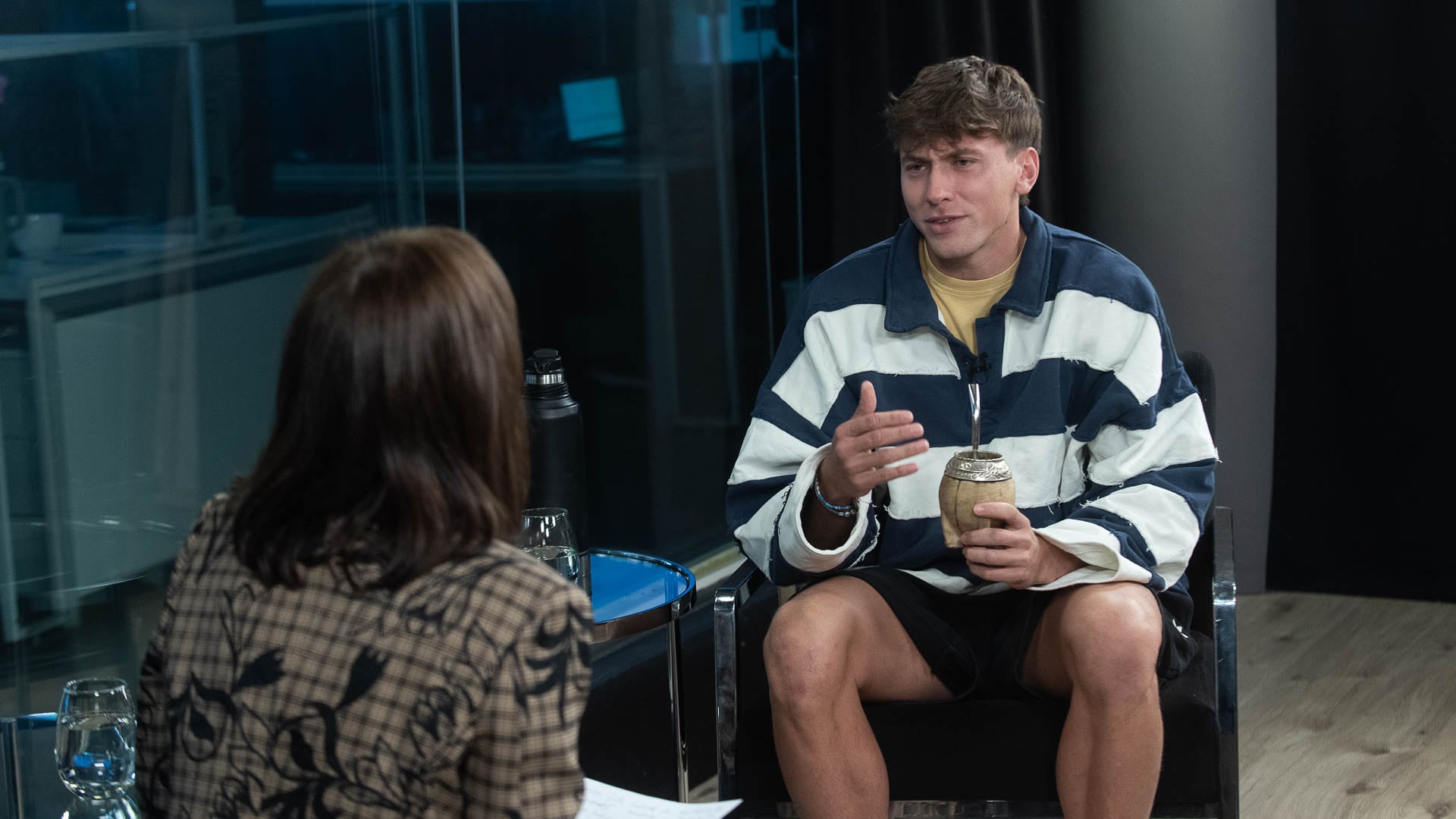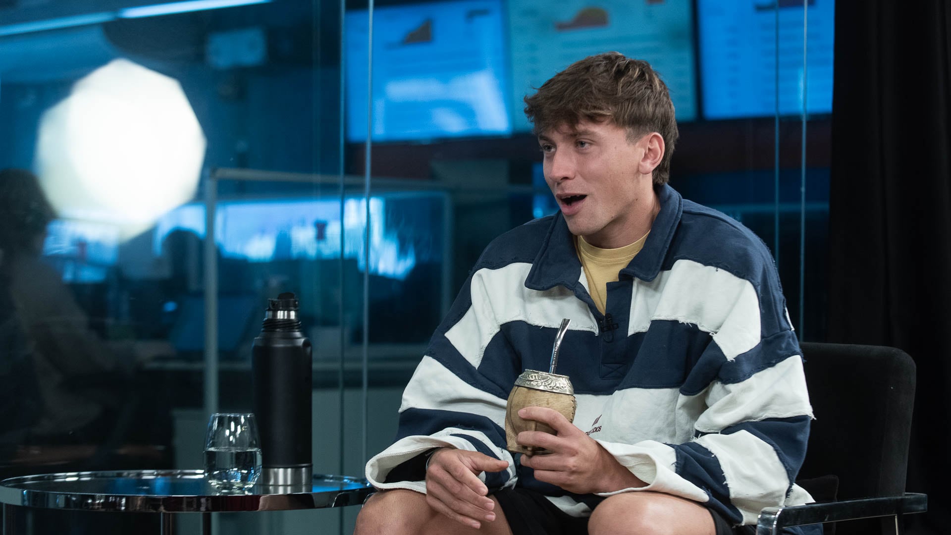 “El novio de Angelita Torres”, así lo conocen muchos hoy. Hoy es parte de “Nadie dice nada”, el programa más popular de streaming de nuestro país. Quiso ser futbolista, jugó en Primera D, se probó en Italia y una serie de episodios accidentales, lesiones y pandemia, le impidieron seguir. Es muy popular en las redes, le dicen “El Mito” por su personaje, el amigo mitomano, y tiene su propio stream. No da entrevistas y cuando confirmó que vendría a Infobae me preguntaba si vendría con el mate, porque a todos lados va con el mate.
