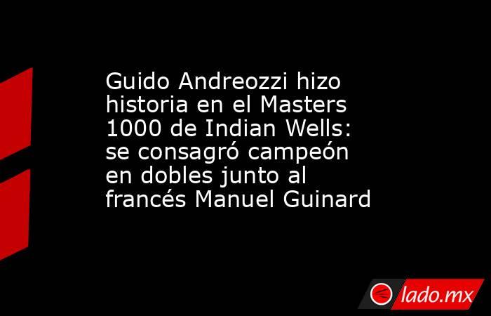 El tenis argentino escribió un nuevo capítulo de gloria en el circuito ATP: Guido Andreozzi se consagró campeón en dobles del Masters 1000 en Indian Wells en dupla con el francés Manuel Guinard.