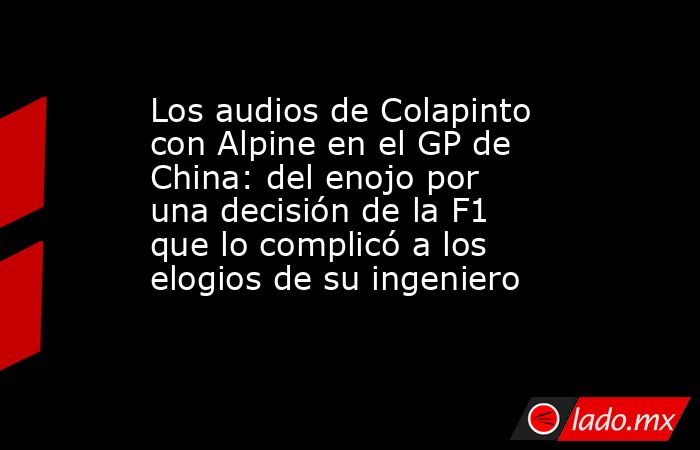 Franco Colapinto tuvo una fantástica actuación en el Gran Premio de China al finalizar en el décimo lugar y sumar su primer punto desde que corre con Alpine. El argentino se destacó en la carrera de la Fórmula 1 a pesar de que un Safety Car perjudicó su estrategia, además de recibir un fuerte golpe por parte de Esteban Ocon. Tras la competición en el Circuito Internacional de Shanghái, el pilarense recibió los halagos de su ingeniero de pista, Stuart Barlow.