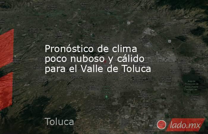 Para este domingo 15 de marzo, se pronostica un día poco nuboso en el Valle de Toluca, con una temperatura máxima de 24 °C y una mínima de 5 °C.