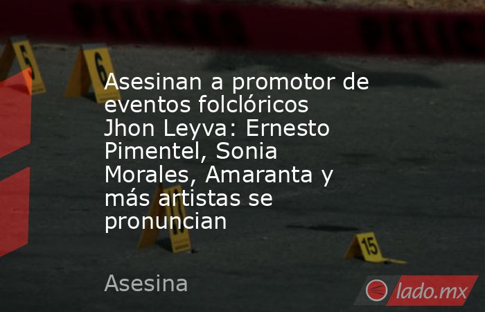 “Otro domingo de levantarse exaltado, preocupado, porque una llamada te dice que mataron a John Leyva. El día de ayer estuvimos trabajando en el aniversario de Independencia, la pasamos muy bien. Lo conocí por la muñequita Sally. Él me contaba que pegaba afiches, repartía volantes. Hoy el folclore pierde a un hombre apasionado, convencido de la importancia del folclore. Él hacía artistas, se comprometía. Hasta siempre y muchas gracias, John Leyva. Siempre te recordaremos”, expresó Pimentel.